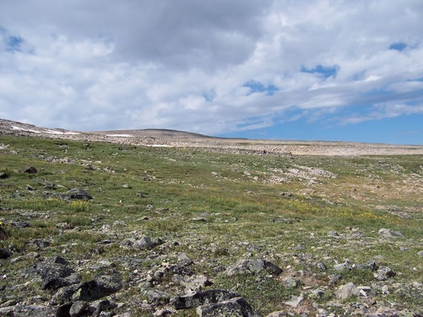 We left our campsite at 9:40 am and continued our trek across Froze-to-Death Plateau. Again, the scale of the plateau is illustrated by the fact that Marc is an even smaller dot in this picture. He’s slightly to the right of the centre of the photo. Can you spot him? |