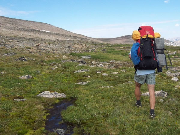 This photo, taken half an hour after the previous picture, is a close up of Marc – almost dwarfed by the load he’s carrying – making his way across Froze-to-Death Plateau.