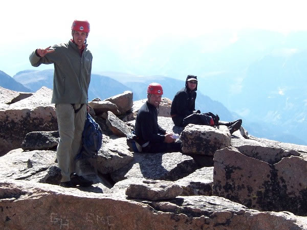 Scott (left), Jeff (centre), and Marc (right) relaxing just below the summit of Granite Peak.