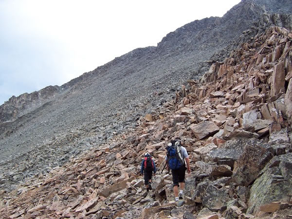 ... beginning the arduous ascent through more talus up to Froze-to-Death Plateau.