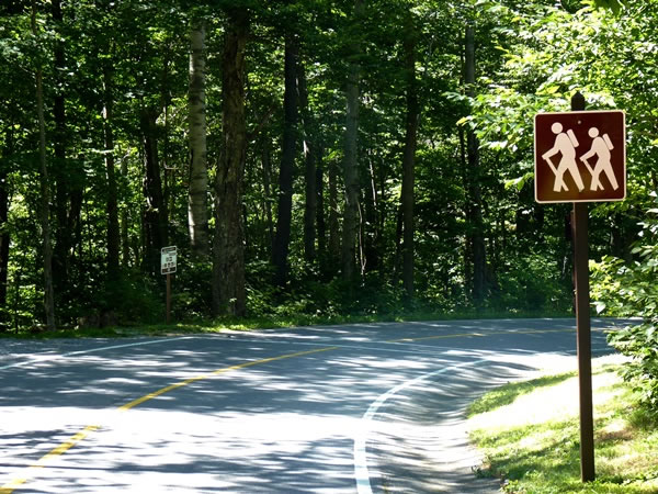 I was pleased to see that cars coming up the mountain were given good, clear warnings when approaching spots where hiking trails cross the road.