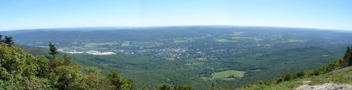 … and this is the view we are enjoined to enjoy. This is a three shot panoramic photograph looking north-east from the summit of Mt Greylock across the plains of north-western Massachusetts and towards the green mountains of Vermont. |