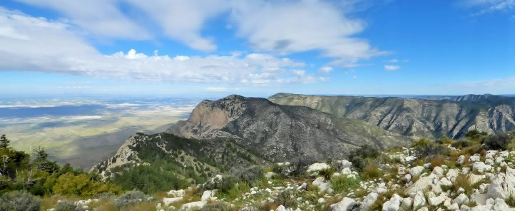 A panoramic photograph looking north from the summit of Guadalupe Peak.
