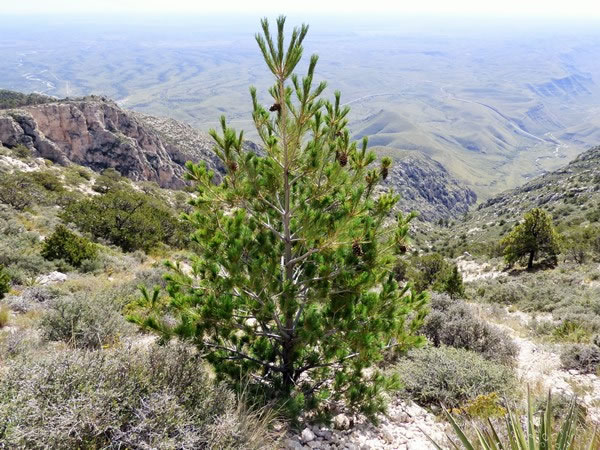 … during the descent, I spent a lot of time photographing vegetation on the mountain. Trees on Guadalupe Peak include pines.