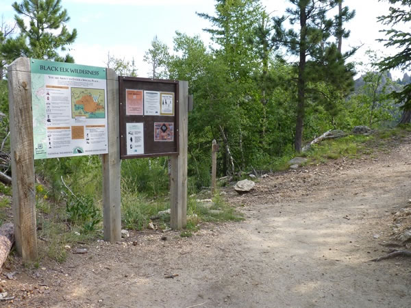 Twenty-five minutes after leaving the trailhead, these signs alerted us to the fact that we were nearing the Black Elk Wilderness portion of the state park. (If we’d turned left just past the sign, we would have entered the wilderness on trail number 2. However, we bore right, stayed on trail number 9, and didn’t enter the wilderness for another half-hour.) |