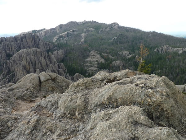 Looking north from the summit of Little Devils Tower towards the summit of Harney Peak.