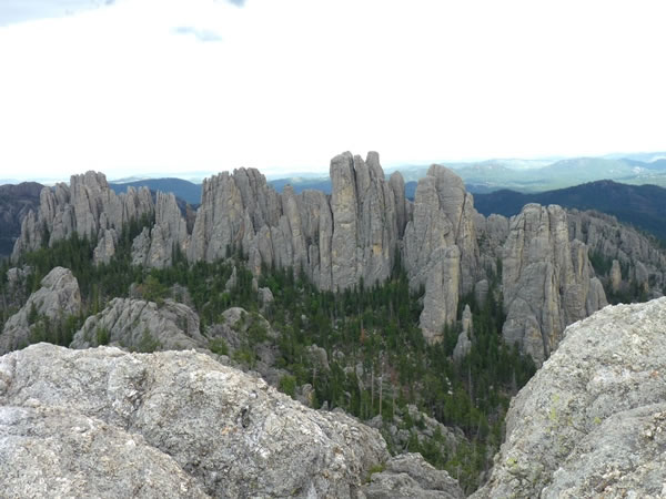 Looking east from the summit of Little Devils Tower, and at the Cathedral Spires.