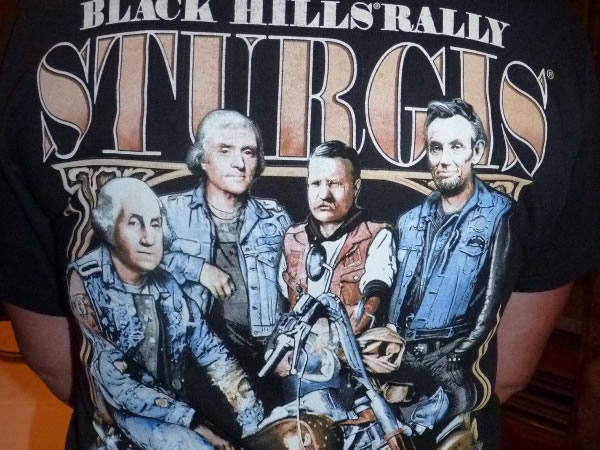 As a political scientist, I especially liked this Sturgis motorcycle rally t-shirt and couldn’t resist asking the woman wearing it if I could take a photograph of it. She was happy to oblige.