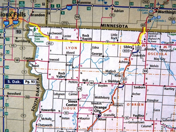 The route we took through Iowa – on state highways 9 and 60 – is marked in yellow on this map.