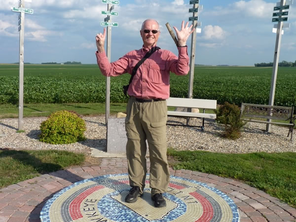 With the aid of an old corn stalk, I’m indicating “1” and “6”, because Hawkeye Point, Iowa, was the 16th state highpoint that I’d been to in the United States.