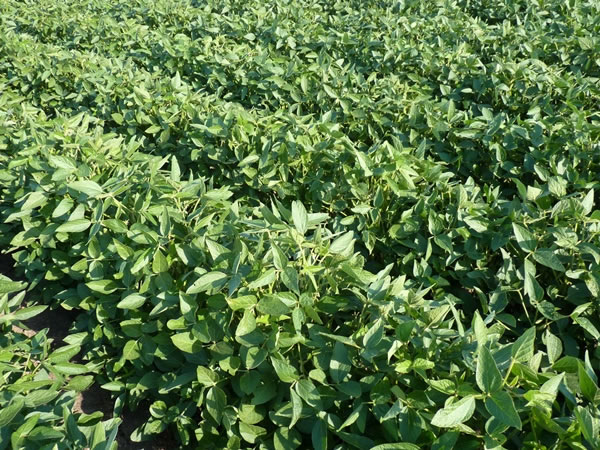 A closer view of some of the rows of soybean plants. Farmers in northern Iowa often plant beans and corn in alternate years, and – given that the fields next to Hawkeye Point contained corn when the Fitch family scaled Iowa’s highpoint in 2008 – we should have expected to find beans in them in 2013.
