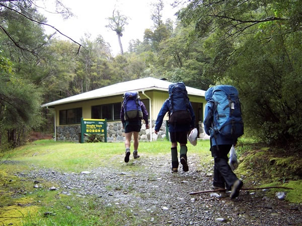 Brown Hut is only a five-minute walk from the start of the track, so we headed there to eat our lunch sheltered from the rain.
