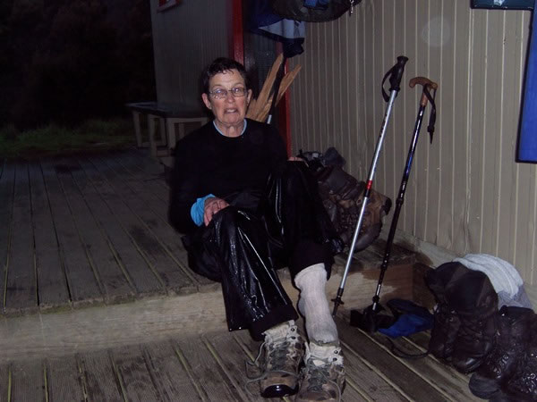 Heather and I were fairly wet – to say the least – when we arrived at the hut at 6:55 pm. It had taken us 4 hours and 45 minutes to hike the 17.5 kilometres / 10.9 miles from Brown Hut to the Perry Saddle Hut. In light of the inclement weather, given that we had taken 15 minutes less than the advertised time of 5 hours to do the hike, we were particularly pleased with our time. |