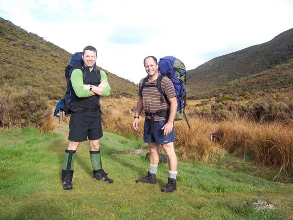 Also staying in the hut overnight was Carl Devereaux, the son-in-law of old friends of ours, David and Judy Mitchell. Carl recognised me and introduced himself to us. Just before Carl (on the left) and his tramping partner, John Horner (right), set off from the Perry Saddle Hut, I took this photograph of the two of them. |