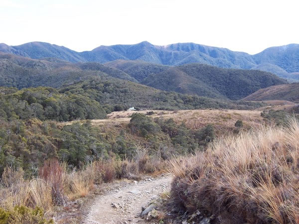 On the edge of the downs, snuggling up to the bush, is the Gouland Downs Hut. However, to get there …
