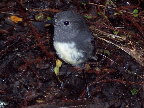 When we stopped some while after 10:30 am to have a snack and a flask of coffee, this South Island robin spent a long time hopping around our feet on the lookout for crumbs and other morsels.