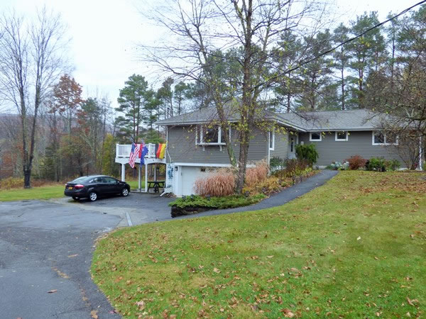 “Basecamp” for my “assault” on New Jersey’s highpoint was roughly 60 miles / 100 kilometres away in the next-door state of New York, where I’d spent a very pleasant weekend with Roger Robinson and Kathrine Switzer. I was one of three visitors, which is why the flags of four countries – namely, from left to right, the United States, Austria, New Zealand, and Germany – were on display at Roger and Kathrine’s New Paltz home. |