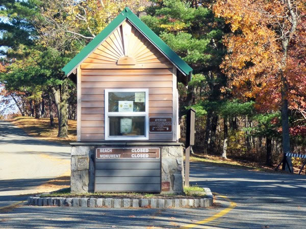 The entrance to New Jersey’s High Point State Park. In view of the fact that it was the last day in October, it wasn’t too surprising to see that the beach (at Lake Marcia) was closed. It was a bit disappointing, though, to see that the High Point monument was also closed … |