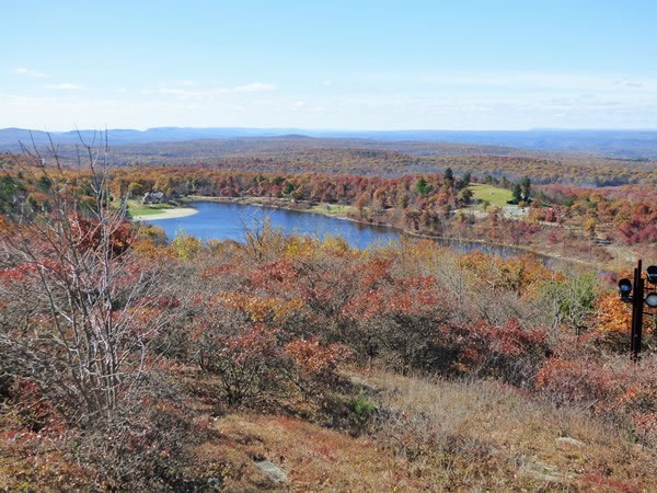 Looking down from the summit of High Point, New Jersey, and onto Lake Marcia.