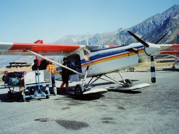 The next morning we loaded all our gear into a ski-equipped Mount Cook Airline’s plane …