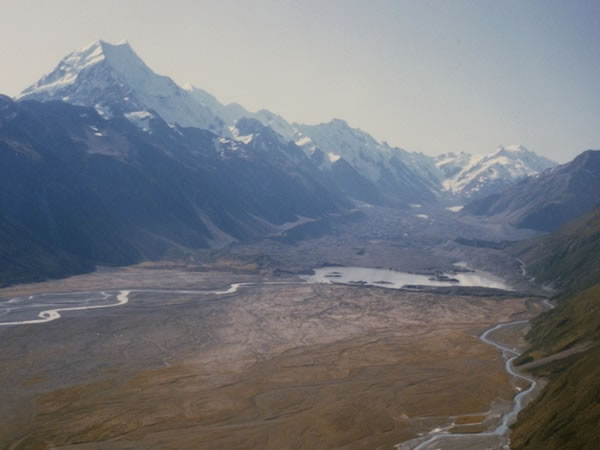 … and flew from the Mount Cook aerodrome up the Tasman valley. Aoraki / Mt Cook (3,724 metres / 12,218 feet) – New Zealand’s highest mountain – dominates the western edge of the valley.