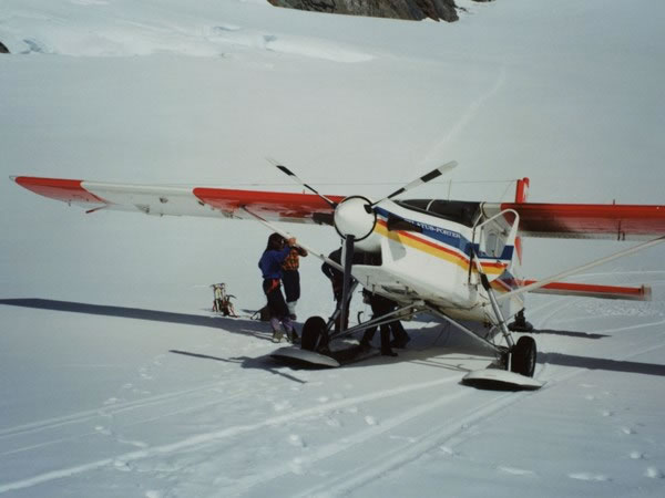 Our plane landed on the névé below Kelman Hut, at an altitude of about 2,400 metres / 7,900 feet above sea-level.