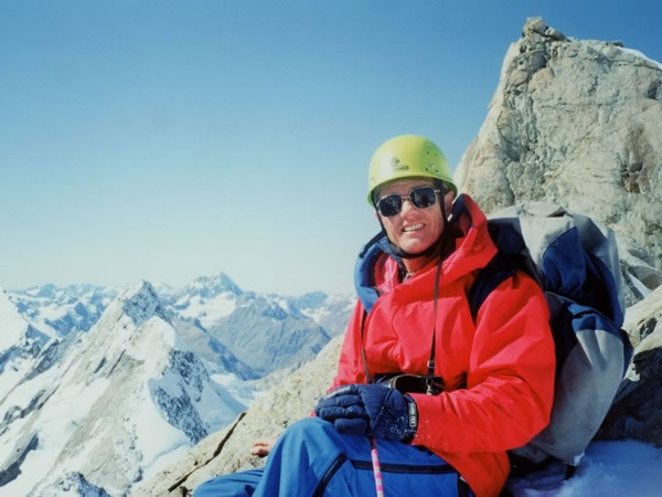 Portrait of a contended climber. The tall peak on the horizon to the left of me is Mt D’Archiac (2,875 metres / 9,432 feet).