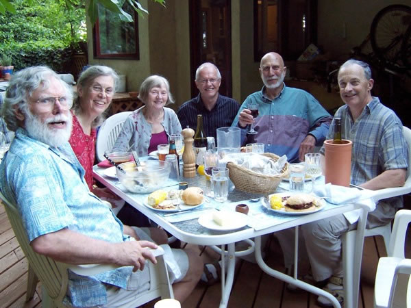 We stayed initially with Portland friends, Terry and Susan Egnor who are seen here (on the left of this photograph) with their neighbours, Jane Luddeke and Bob Anderson (third and fifth from the left respectively), and with Eric and me enjoying an Independence Day dinner. |