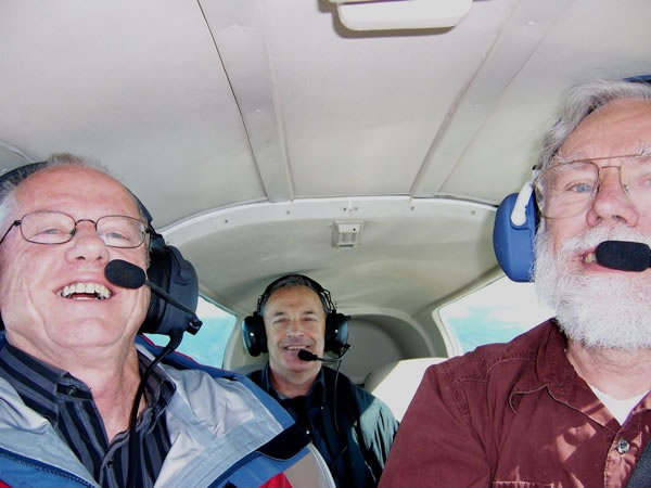 ... Terry took us for a wonderful two-and-a-half hour flight. (From left to right: self, Eric, and Terry.)