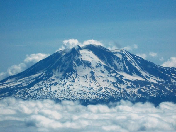 After circling Mt St Helens, we flew east towards Mt Adams (12,281 feet / 3,743 metres), the second highest mountain in Washington state.