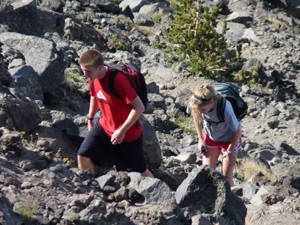 ![]() Three hours and five minutes after we set out, this young couple – who were alternatively hiking and jogging their way up the mountain – caught up with us. Despite the fact that the young woman had just slipped and cut her knee on the scoria … |