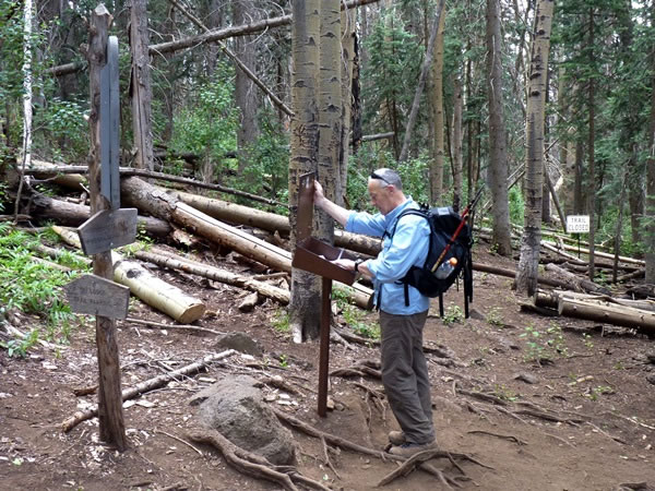 At 12:10 pm – almost six-and-a-half hours after we began our climb – Eric completed our entry in the trail register.