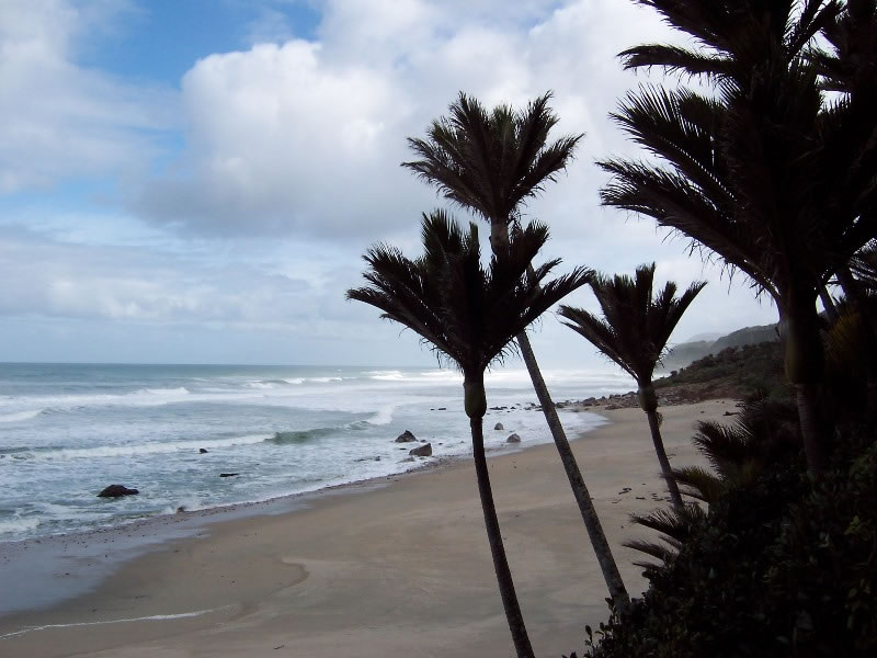 This photograph of Nikau palms beside a west coast beach was taken on 21 October 2009.