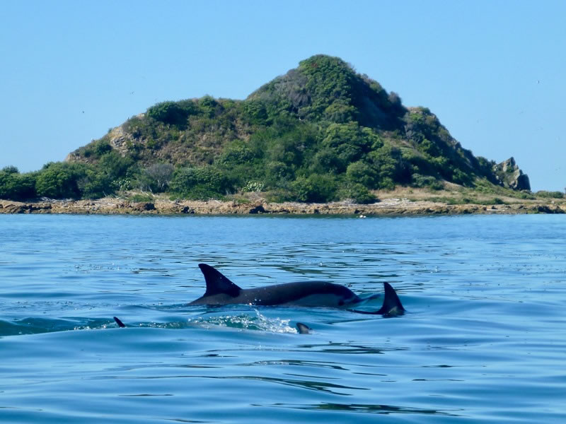 Taputeranga (an island off the south coast of Wellington, New Zealand): I coordinate a team of kayakers who monitor penguin nesting boxes on Taputeranga, and I was extremely fortunate to be able to take this photograph of part of a pod of bottlenose dolphins while I was kayaking to the island on 7 January 2024. |