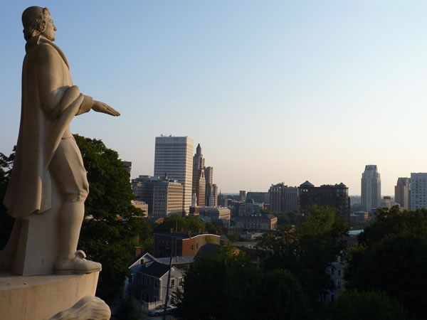 On Wednesday, 21 August 2013, I went to Providence, the capital of Rhode Island, to visit a friend, Scott Triedman, whom I’d first met when Heather and I were hiking round Mt Ngauruhoe near the centre of New Zealand’s North Island. Scott showed me round parts of the city. This statue overlooking Providence is of Roger Williams who, in 1636, founded a colony – Providence Plantations – dedicated to the separation of church and state. |