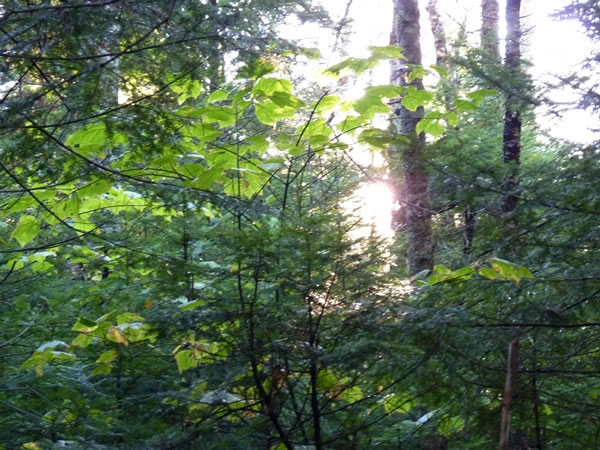 I took this photo at 6:58 am. The sun was above the horizon, but because of the denseness of the forest, it was a long time till I stood in the direct rays of the sun.