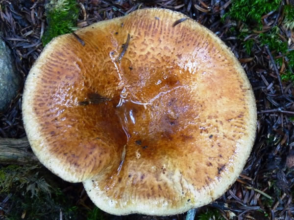 This toadstool (or is it a mushroom?) looks as though it’s been coated with honey.