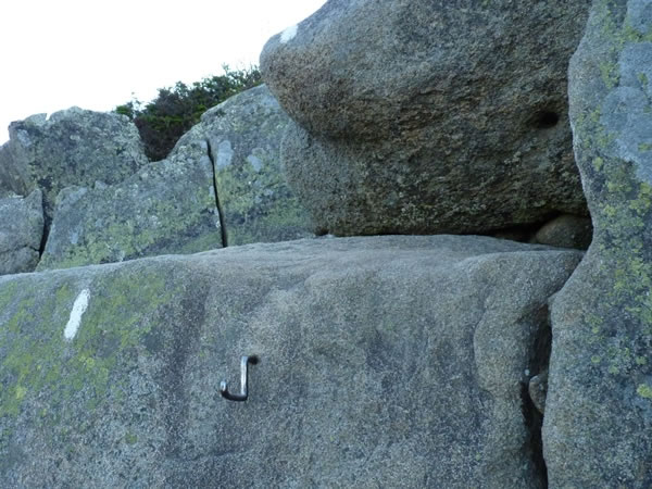 Climbing this short but smooth rock face (which was about 5 feet / 1.5 metres high) was probably the trickiest part of the climb. The stirrup-like hold was more useful for climbing down from the ledge than up to it.
