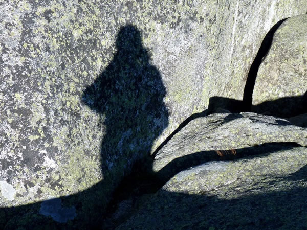 After I’d safely negotiated the most difficult part of the boulder field, I took this photo of my shadow on the rock-face in front of me …