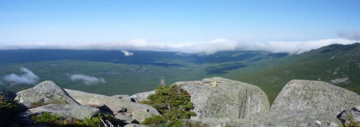 … I then turned round and took this two-shot panorama looking west, across some of the boulders I’d traversed and down onto the trees and ponds below.