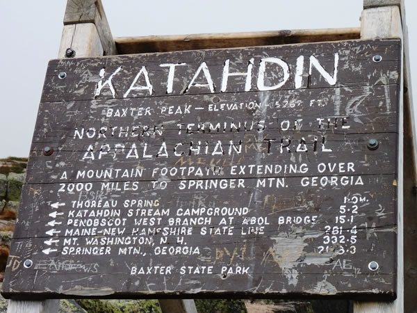 There’s some confusion as to the exact height of Mt Katahdin. This sign at the summit says it’s 5,267 feet; Charlie and Diane Winger’s book, Highpoint Adventures, lists the height as 5,268 feet; Wikipedia’s figure is 5,269 feet; and the map I used during the climb shows the summit as being 5,271 feet above sea-level. |