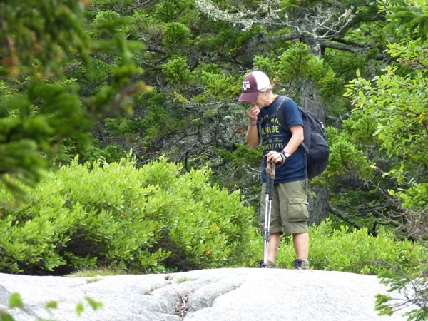 Barbara paused near the Katahdin Steam Falls to eat some wild berries.