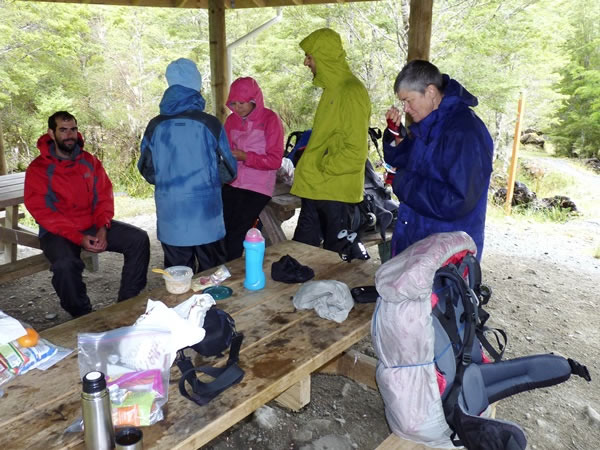 At 11:30 am – roughly two-and-a-half hours after leaving the Iris Burn Hut – we stopped at a handily-located shelter for coffee and a snack.