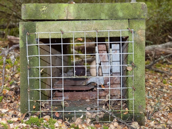 Looking into a stoat trap with its spring-laden jaws and an egg as bait.