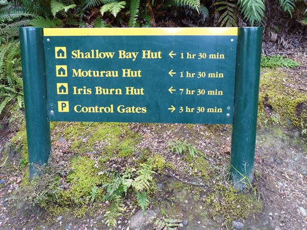 According to this DoC (Department of Conservation) signpost, Heather and I had a three-and-a-half hour walk ahead of us.