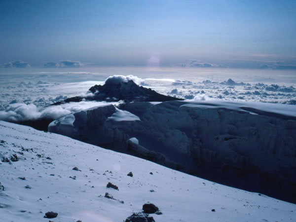 Looking east across a small part of the southern icefields and towards Mawenzi.