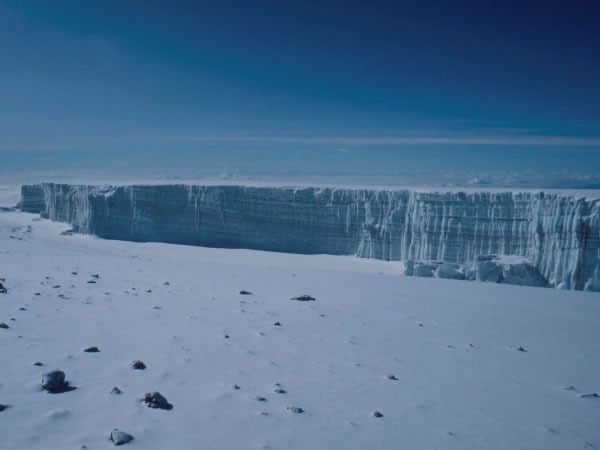 Some of the glacial cliffs of Kibo’s southern icefields.