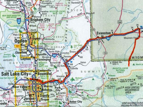 Eric and I eventually left Salt Lake City around the middle of the day and drove east on I-80 (that is, on Interstate highway 80) as far as Evanston, Wyoming.