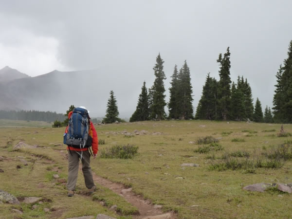 Shortly before 2:25 pm, we saw these snow shower clouds coming towards us from the south-west, so decided to seek the shelter of some trees. Kings Peak is on the left-hand side of the picture.