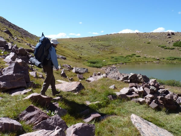 We were both hungry and I was particularly tired. I doubted my ability to carry on and walk all the way out to the trailhead, but Eric was adamant he was not going to sleep (or rather not sleep!) on a rock again, so I reluctantly agreed to attempt to the walk-out, and we left our campsite at 3:47 pm (almost an hour and a quarter after arriving back at it). |
